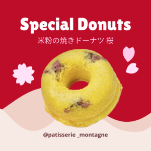 ●米粉(ミズホチカラ)と、品質の高い大阪府能勢町の『能勢おうはんのたまご』を使用した焼きドーナツ。